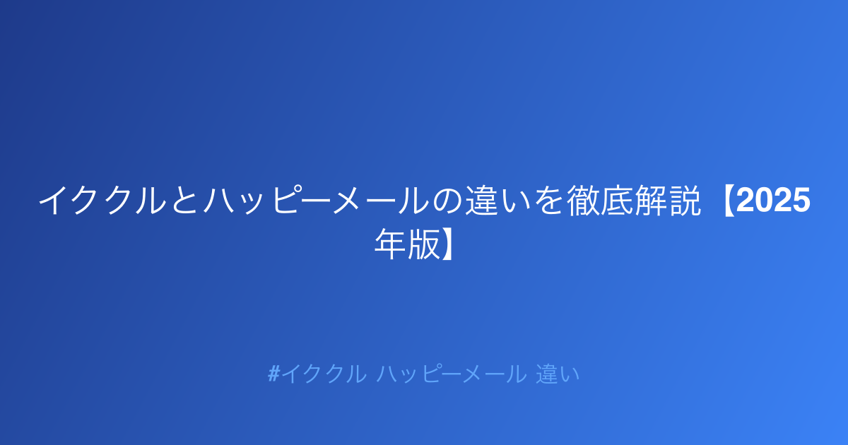 本記事では、実際の利用者の体験談、専門家による詳細な分析、そして最新の市場動向を踏まえて、9つの重要な観点からイククル ハッピーメール 違いについて徹底的に解説します。