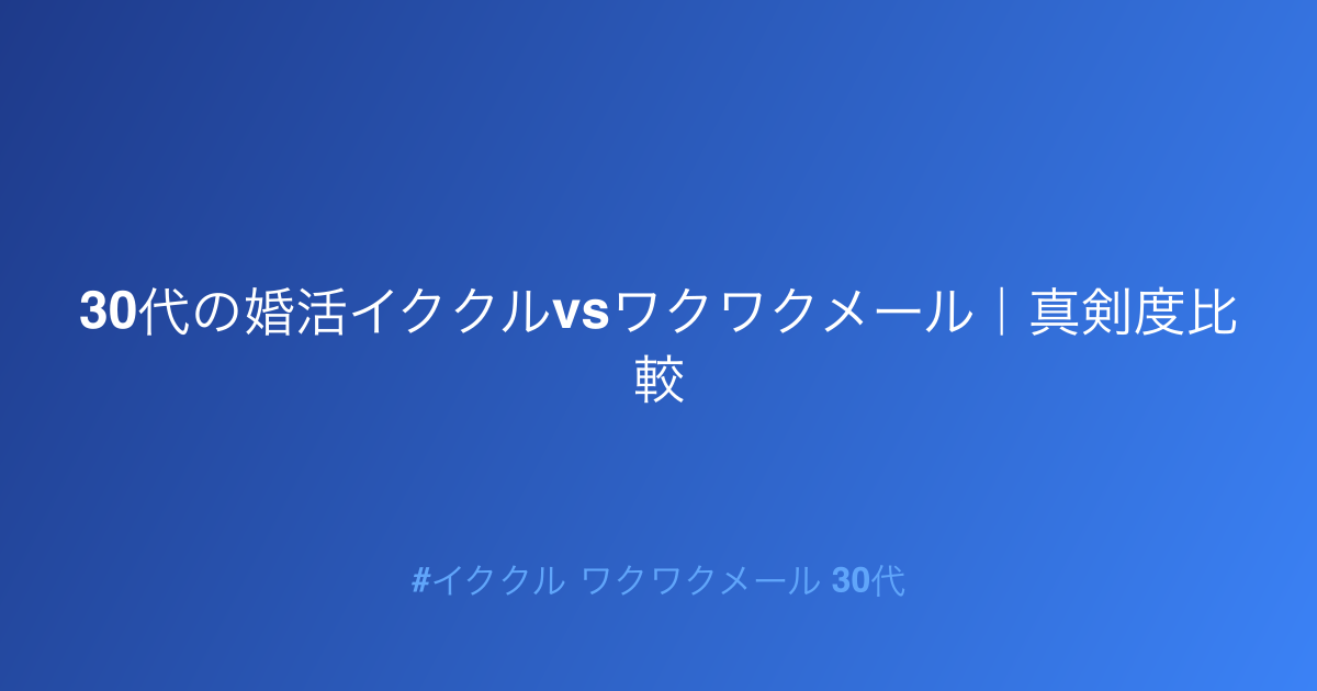 - 30代の婚活:イククルとワクワクメール、どちらが真剣?