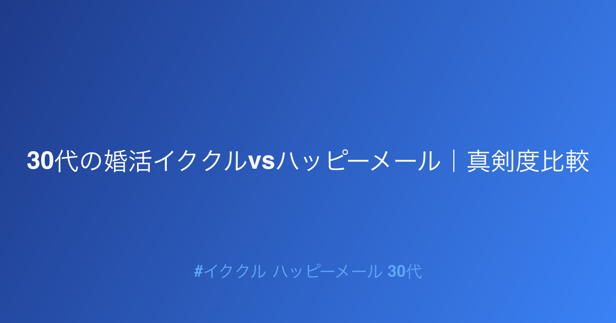 ✅ イククル ハッピーメール 30代について、効果的な活用方法や成功のコツを解説します。
