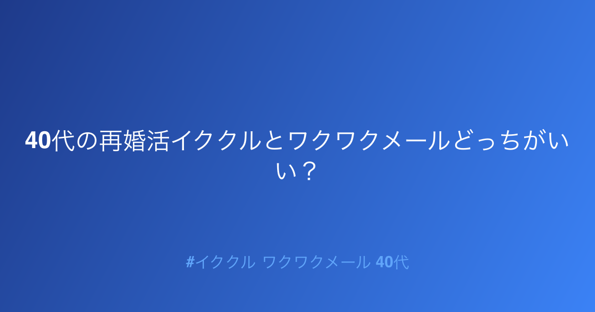 - 40代の再婚活:イククルとワクワクメール、なぜ比較検討するべきか?
