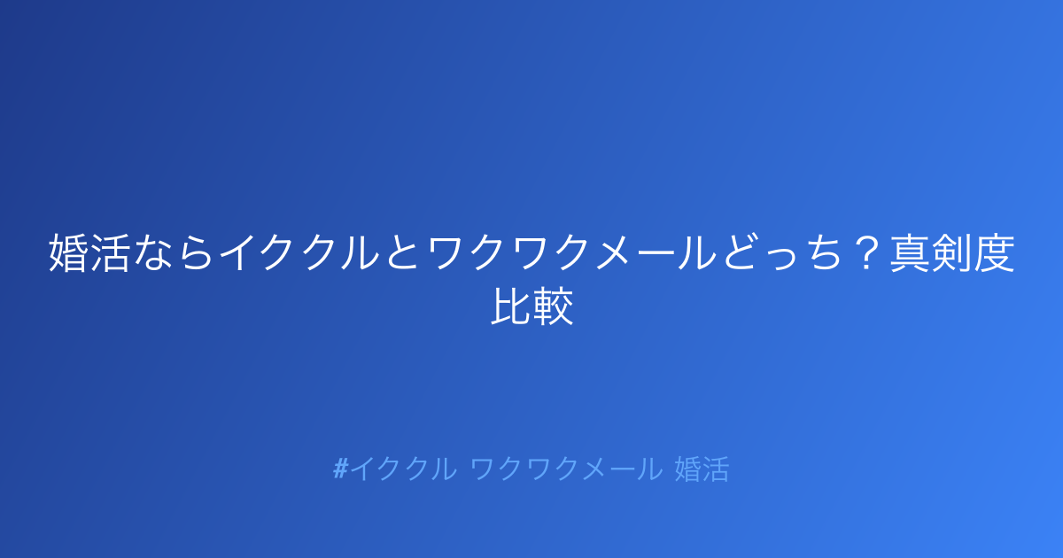 - 婚活アプリ選びの最前線:イククルとワクワクメール、どちらが最適?
