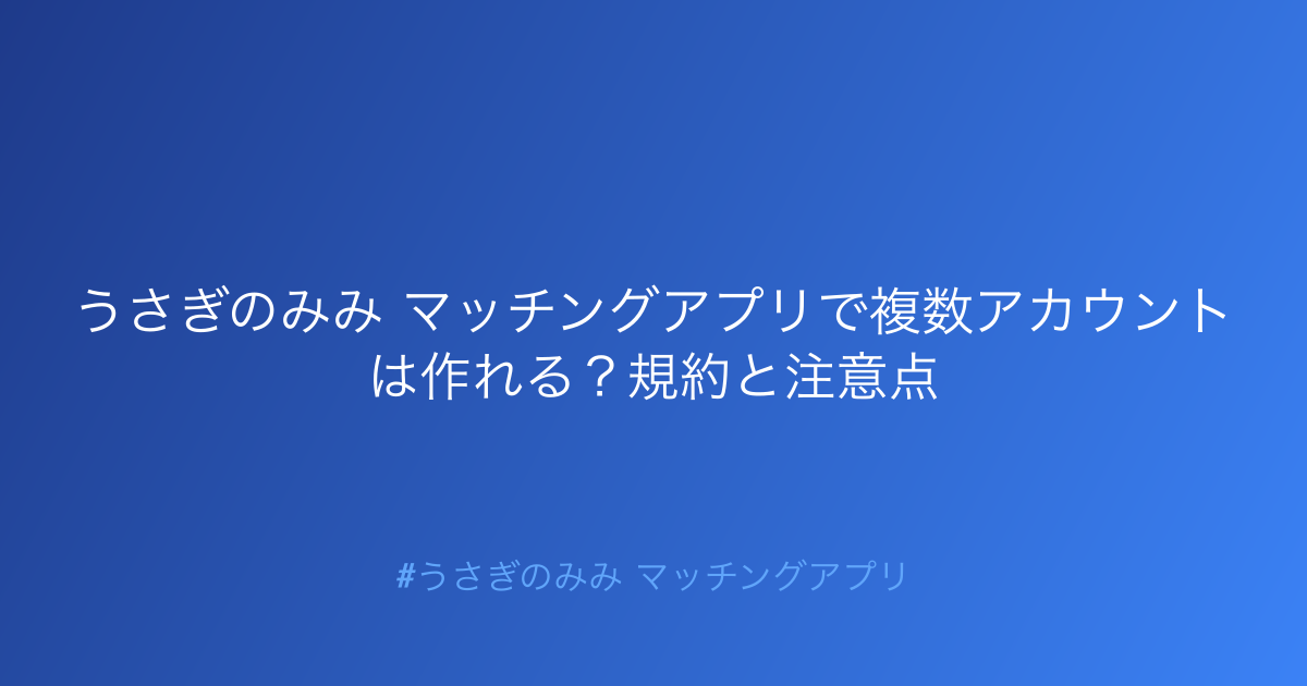 ⚠️ 結論から申し上げますと、うさぎのみみ マッチングアプリにおいて、原則として複数アカウントの作成は認められていません。