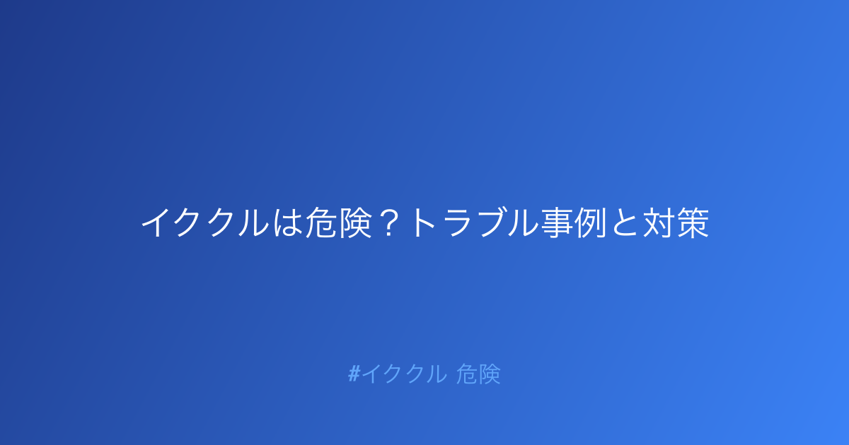 ⚠️ 本記事は、イククルの安全性に関する情報を提供するものであり、利用を推奨または禁止するものではありません。