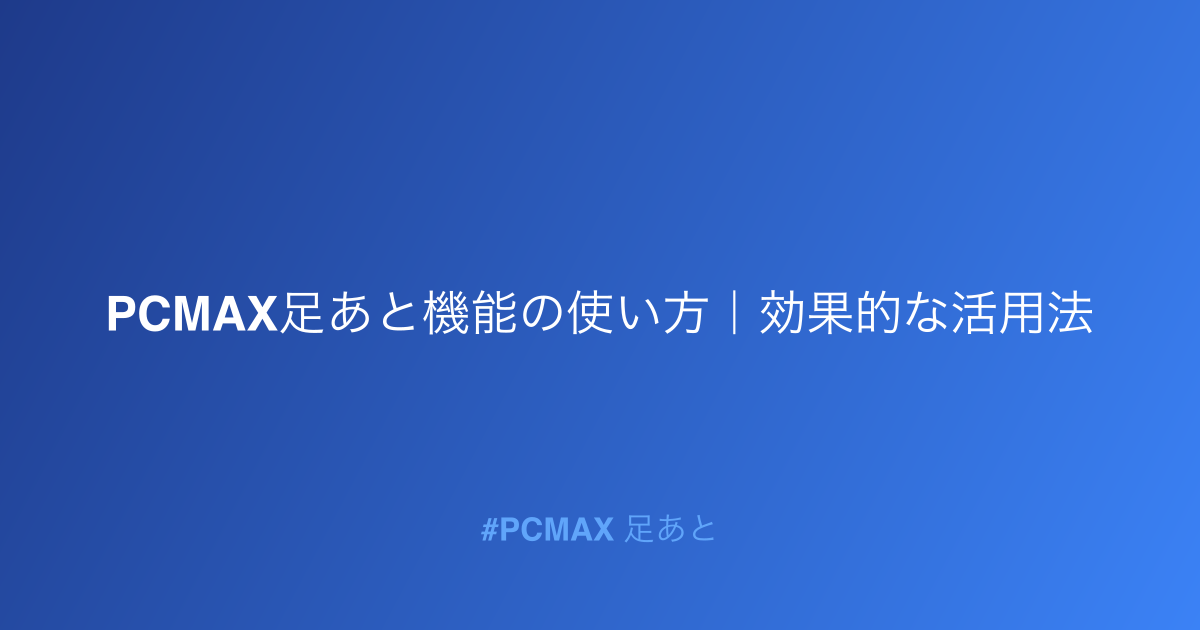PCMAX PCMAX足あと機能の使い方|効果的な活用法 PCMAX 足あと【2025年最新】完全解説!足跡を付けずに異性を探す方法を専門家監修で徹底解説。初心者も安心、5分で分かるPCMAX足あと対策と注意点。詳細はこちら! 2025.10.23 PCMAX足あと