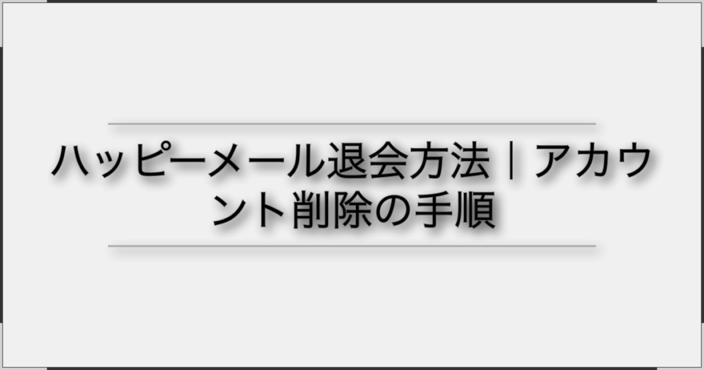 ハッピーメール 退会【2025年最新】方法を完全解説!専門家監修で5分完了。ハッピーメール退会の手順・注意点、退会できない時の対処法も解説。詳細はこちら!