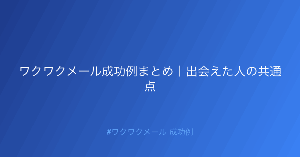ワクワクメール 成功例【2025年最新】完全版!専門家が成功方法を徹底解説。初心者でも安心のやり方、注意点、成功例を今すぐ確認!詳細はこちら。