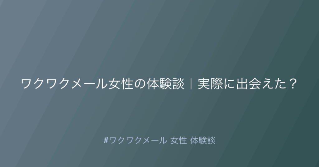 ワクワクメール 女性 体験談【2025年最新】成功談と失敗談を徹底解説!初心者も安心、出会いの方法やコツが5分で分かる!他では知れない限定体験談はこちら。