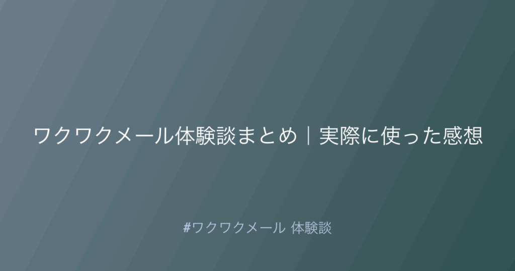 ワクワクメール体験談【2025年最新】成功する方法を専門家が完全解説!ワクワクメール体験談から分かった、失敗しないやり方と注意点を今すぐ確認!