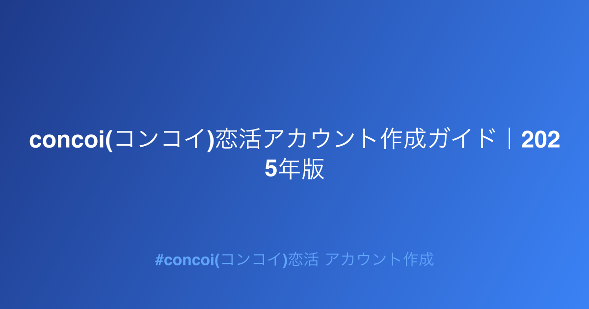 ✅ concoi(コンコイ)恋活 アカウント作成について、効果的な活用方法や成功のコツを解説します。