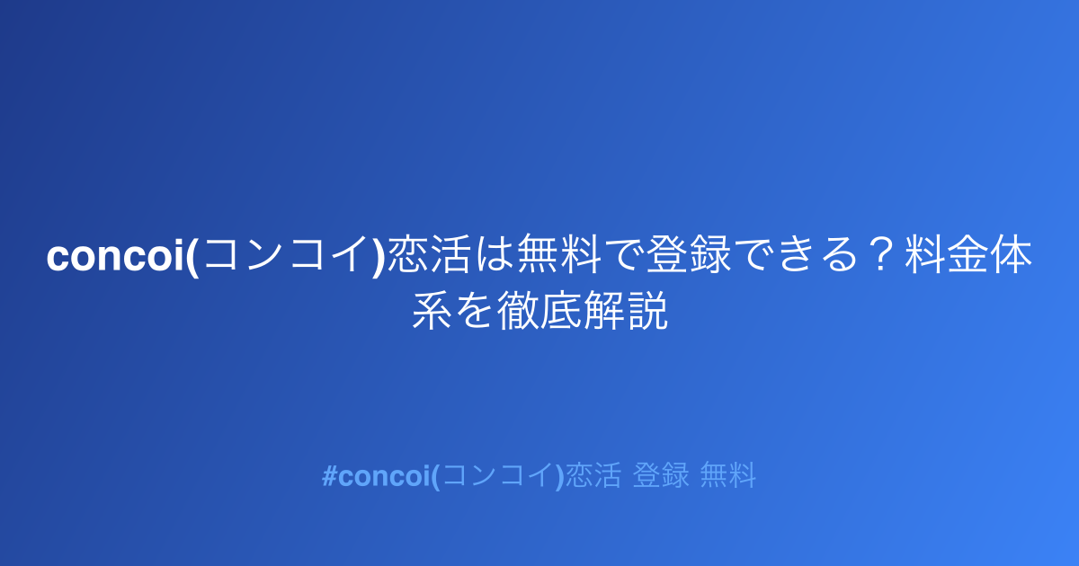 この記事では、concoi(コンコイ)恋活 登録 無料に関する疑問を専門的な観点から詳しく解説し、実践的な情報をお届けします。