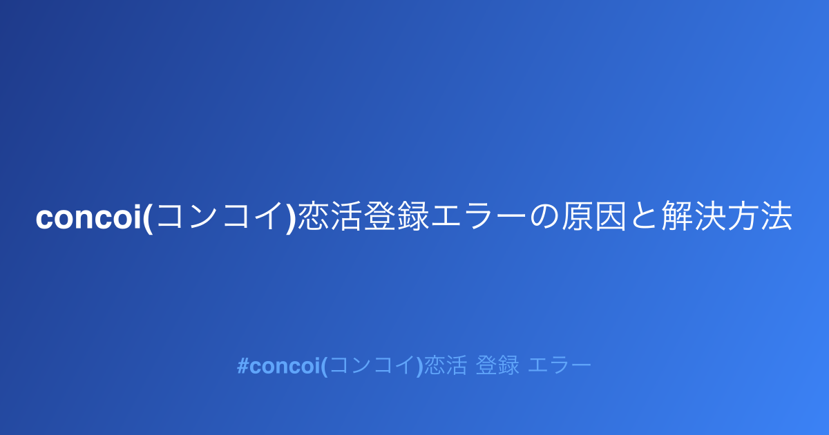 ✅ concoi(コンコイ)恋活 登録 エラーについて、効果的な活用方法や成功のコツを解説します。