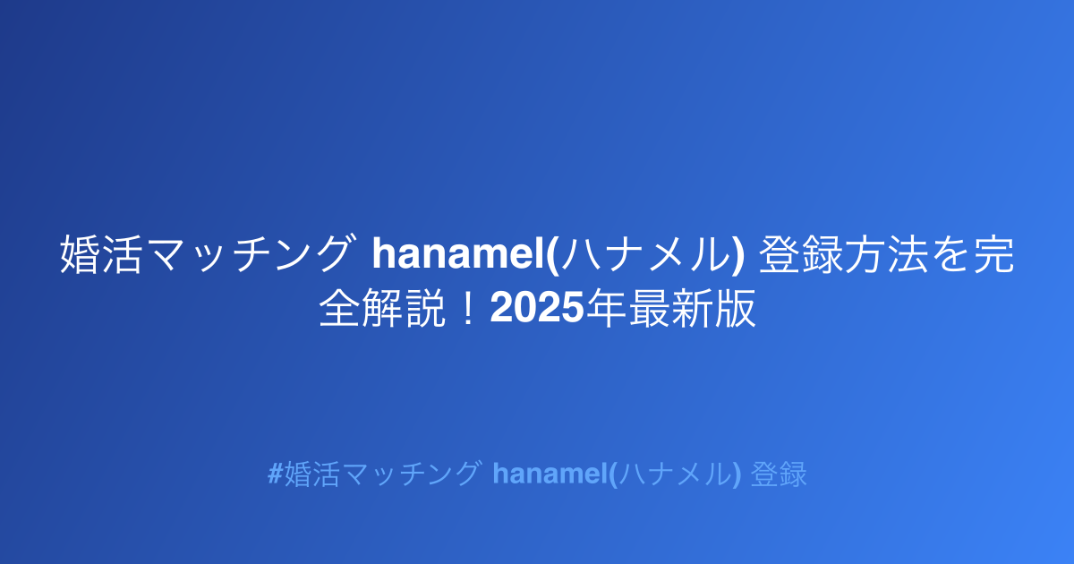 ✅ 婚活マッチング hanamel(ハナメル) 登録について、効果的な活用方法や成功のコツを解説します。