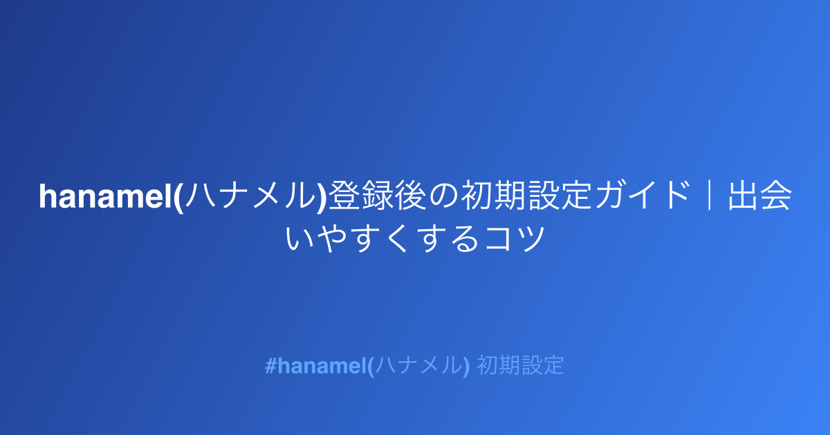 - hanamel(ハナメル) 初期設定後に行うべきこと:出会いを増やすためのステップ