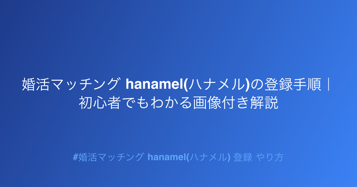 ✅ 婚活マッチング hanamel(ハナメル) 登録 やり方について、効果的な活用方法や成功のコツを解説します。