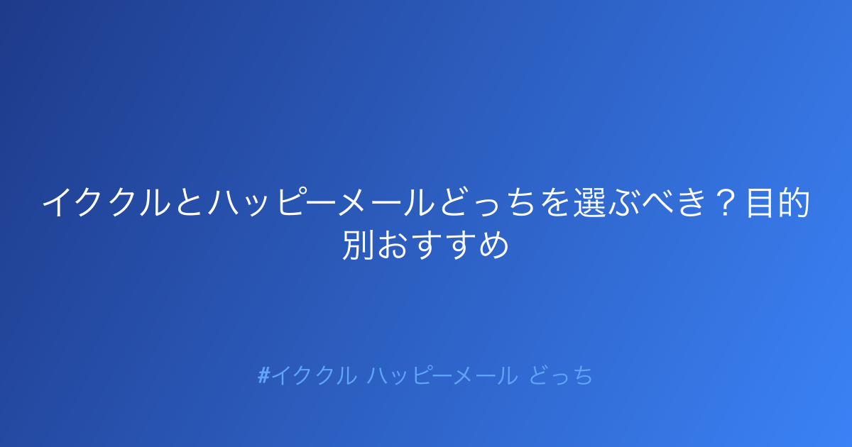 この記事では、イククル ハッピーメール どっちに関する疑問を専門的な観点から詳しく解説し、実践的な情報をお届けします。