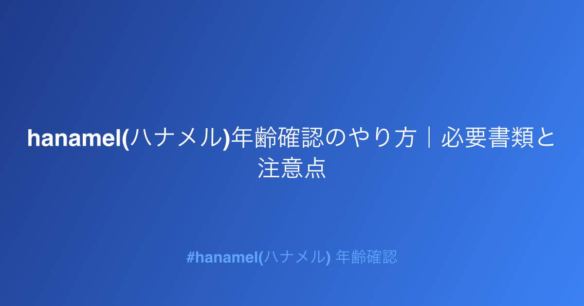 - hanamel(ハナメル) 年齢確認とは?利用開始前に知っておくべきこと