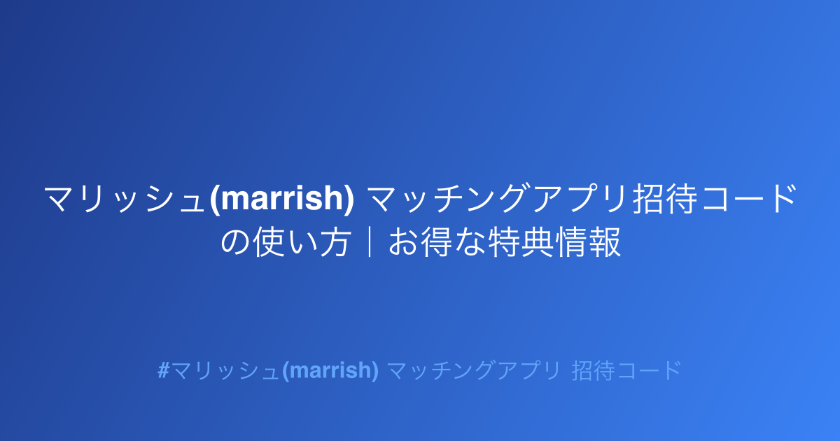 マリッシュ(marrish) マッチングアプリ 招待コードについて、効果的な活用方法や成功のコツを解説します。