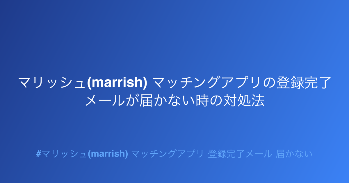 - マリッシュ(marrish) マッチングアプリ 登録完了メール 届かないについて:マリッシュ(marrish) 登録完了メールが届かない!まずは確認すべき基本事項