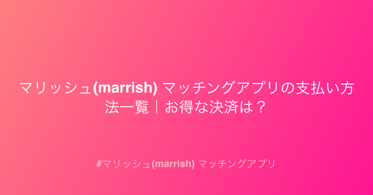 - マリッシュ(marrish) 支払い方法一覧:あなたに最適な支払い方法は?