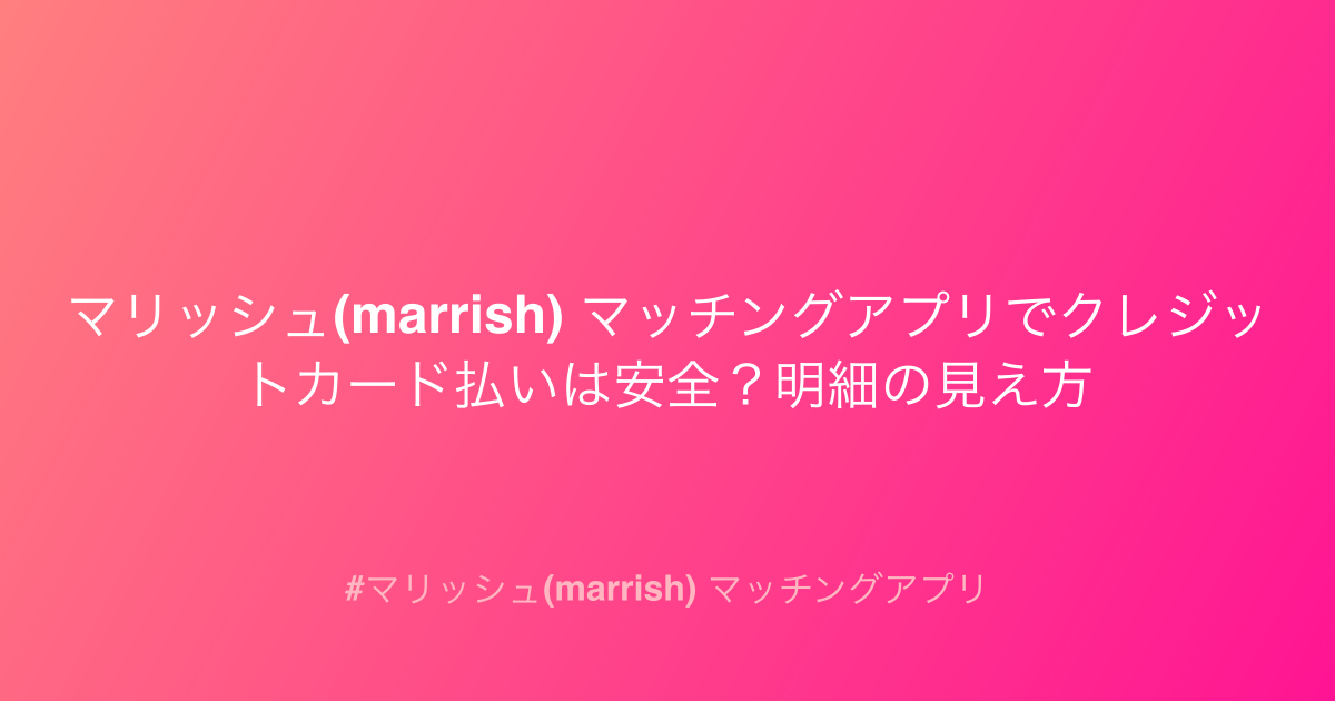 - マリッシュ 支払い方法:クレジットカード決済のメリット・デメリットと注意点