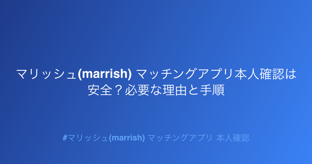 この記事では、マリッシュ(marrish) マッチングアプリ 本人確認に関する疑問を専門的な観点から詳しく解説し、実践的な情報をお届けします。