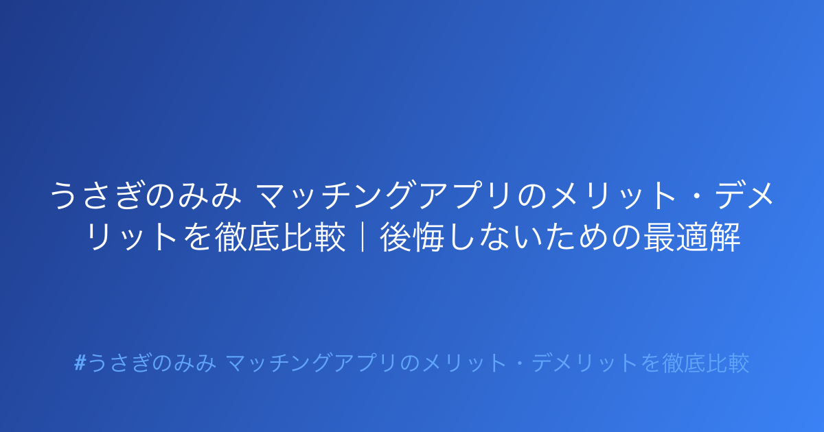 うさぎのみみのメリット・デメリットを徹底比較【30代向け】