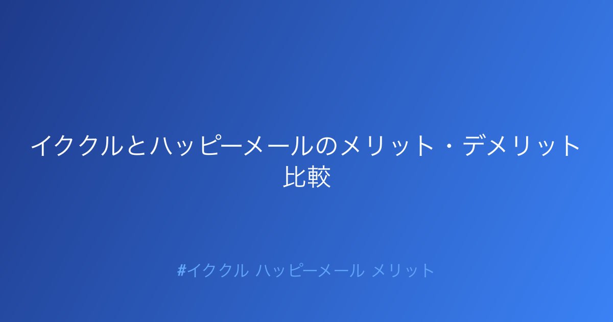 ✅ イククル ハッピーメール メリットについて、効果的な活用方法や成功のコツを解説します。