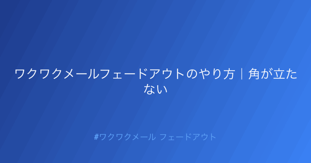 ワクワクメール フェードアウト【2025年最新】完全解説!失敗しない方法を専門家監修。初心者も安心、フェードアウトのやり方・手順を5分で理解。詳細はこちら!