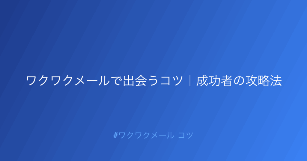 ワクワクメール コツ【2025年最新】完全版!成功のコツを専門家が徹底解説。初心者も安心、出会いを実現する方法と注意点を詳細ガイド。今すぐ詳細をチェック!