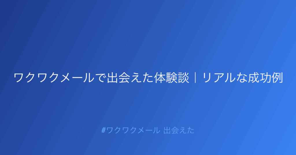 ワクワクメール 出会えた【2025年最新】専門家監修!5分で分かる出会える方法を完全解説。初心者も安心のやり方と出会いのコツ、注意点も紹介。ワクワクメールで出会えた詳細はこちら!