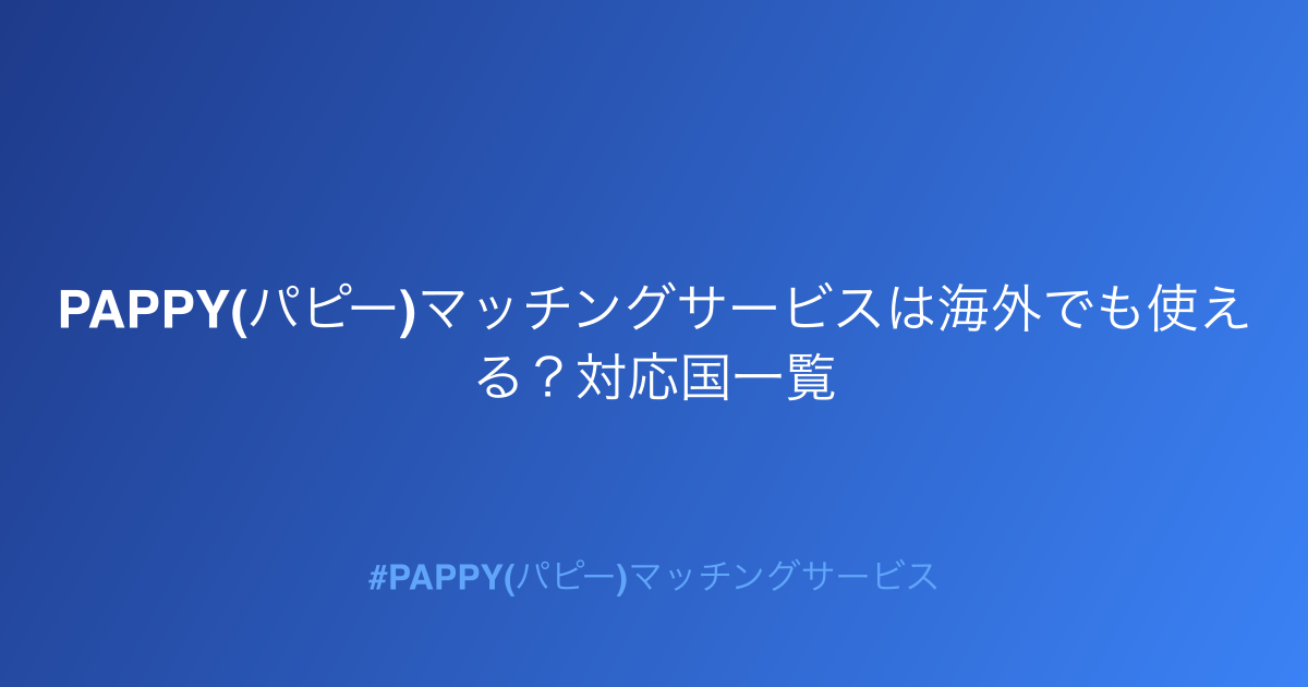 - PAPPY(パピー)マッチングサービスは海外でも使える?利用可能国と基本情報
