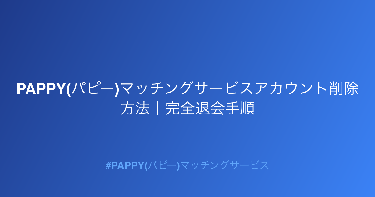 - PAPPY(パピー)マッチングサービスのアカウント削除とは?完全退会との違いを解説