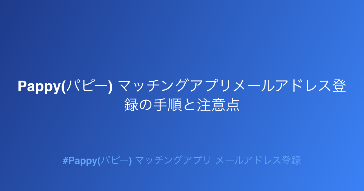 ✅ Pappy(パピー) マッチングアプリ メールアドレス登録について、効果的な活用方法や成功のコツを解説します。