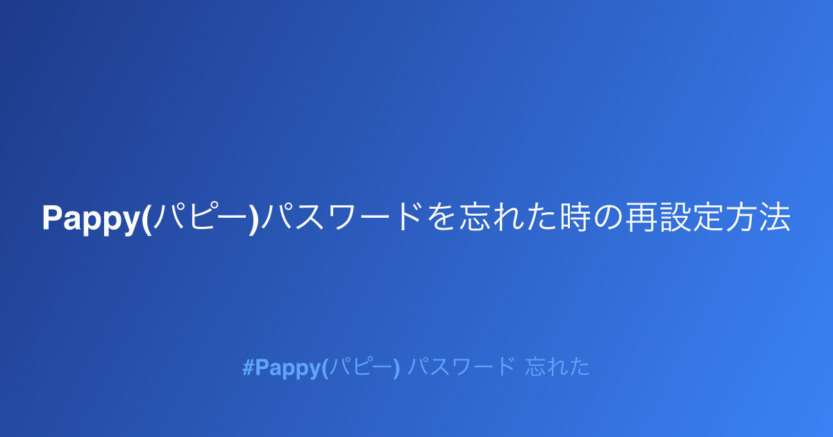 もし、これらの確認作業を行ってもパスワードが思い出せない場合は、Pappy(パピー)のパスワード再設定の手続きに進む必要があります。