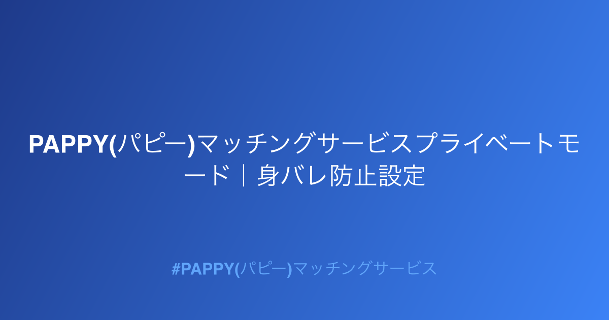 - PAPPY(パピー)マッチングサービス プライベートモードの設定方法:初心者向け完全ガイド