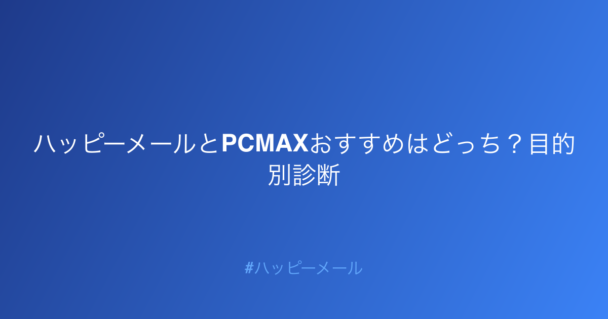 ✅ ハッピーメール PCMAX 評判について、効果的な活用方法や成功のコツを知りたい方も多いのではないでしょうか。