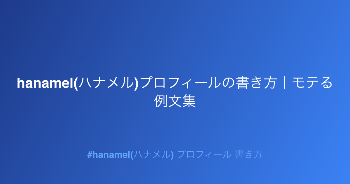 - hanamel(ハナメル) プロフィールの書き方:なぜ重要なのか?