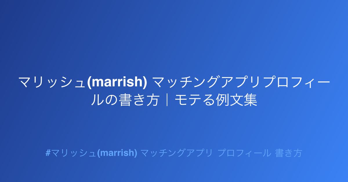 マリッシュ(marrish) マッチングアプリ プロフィール 書き方について、効果的な活用方法や成功のコツを解説します。