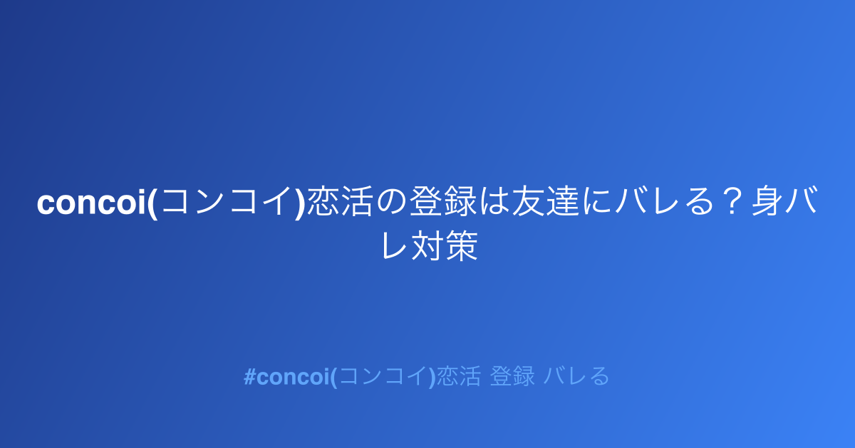- concoi(コンコイ)恋活 登録 バレる?身バレに関するQ&A:疑問を徹底解決