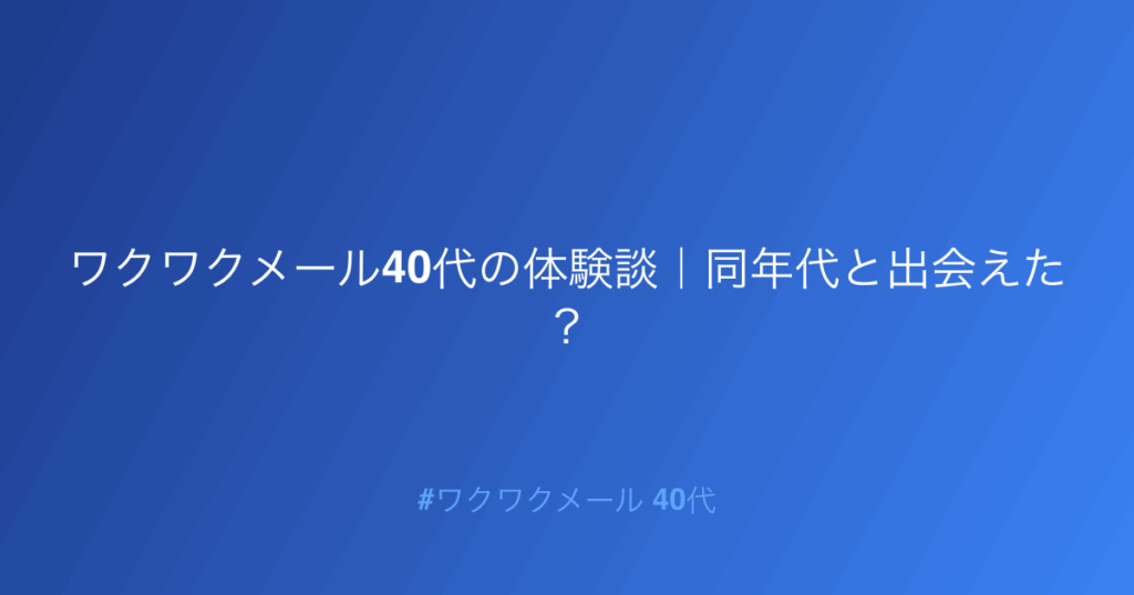 ワクワクメール 40代【2025年最新】出会いの方法を専門家が完全解説!40代でも安心、失敗しないやり方と注意点を5分で理解。詳細はこちら!