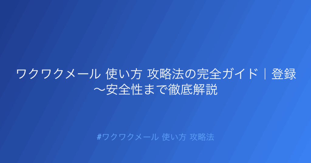 ワクワクメール おすすめ【2025年最新】失敗しない方法を専門家が完全解説!初心者も安心のやり方、注意点まで5分で理解。今すぐ詳細をチェック!