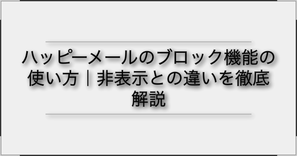 ハッピーメール ブロック機能 使い方【2025年最新】完全解説!専門家監修で、初心者でも安心。ブロック方法から注意点、メリットまで5分で理解。ハッピーメール ブロック機能 使い方、今すぐ詳細はこちら!