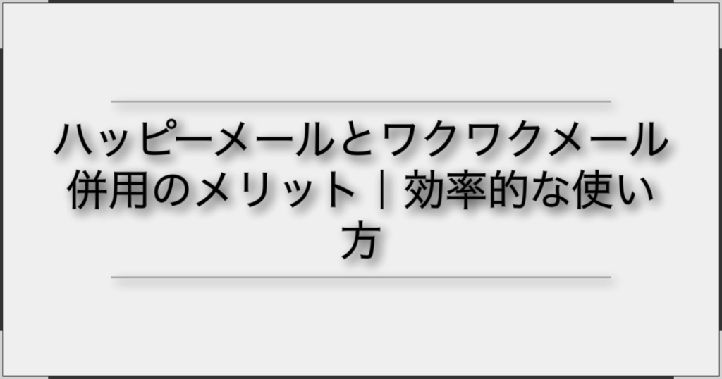 ハッピーメール ワクワクメール 併用【2025年最新】成功法を専門家が完全解説!初心者も5分で安心。ハッピーメールとワクワクメール併用のコツ、注意点、限定情報を今すぐ確認!