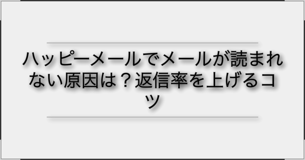 ハッピーメール メール 読まれない 原因【2025年最新】?専門家が原因を完全解説!初心者でも安心、メールが読まれる方法とコツを5分で理解。今すぐ詳細をチェック!