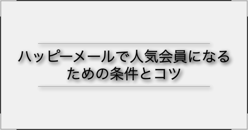 ハッピーメール 人気会員 条件について専門家が完全解説。方法からやり方まで初心者にも分かりやすく紹介。2025年最新情報で確実に成功しましょう。