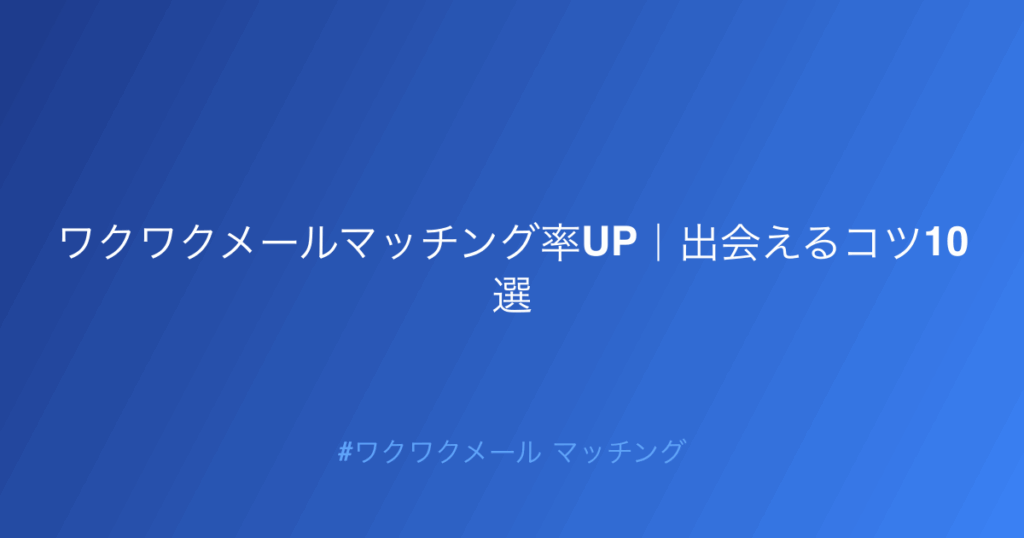 ワクワクメール マッチング【2025年最新】成功のコツを専門家が完全解説!初心者も安心、出会いの方法から注意点まで。詳細はこちらで今すぐ確認!