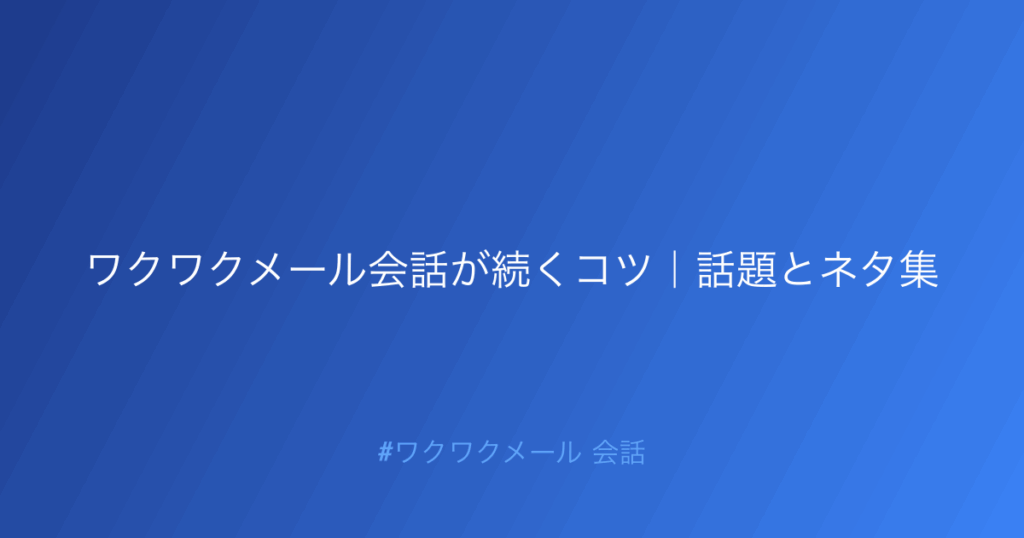 ワクワクメール 会話【2025年最新】完全解説!出会いを左右する会話術を専門家が伝授。初心者も安心のコツとポイントで、理想の相手との会話を成功させましょう。詳細はこちら!