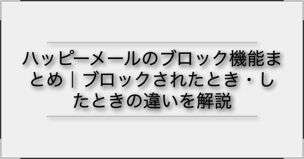ハッピーメール ブロックされるとについて詳しく解説。実際の体験談、口コミ、攻略法をもとにハッピーメール ブロックされるとの全てをまとめました。