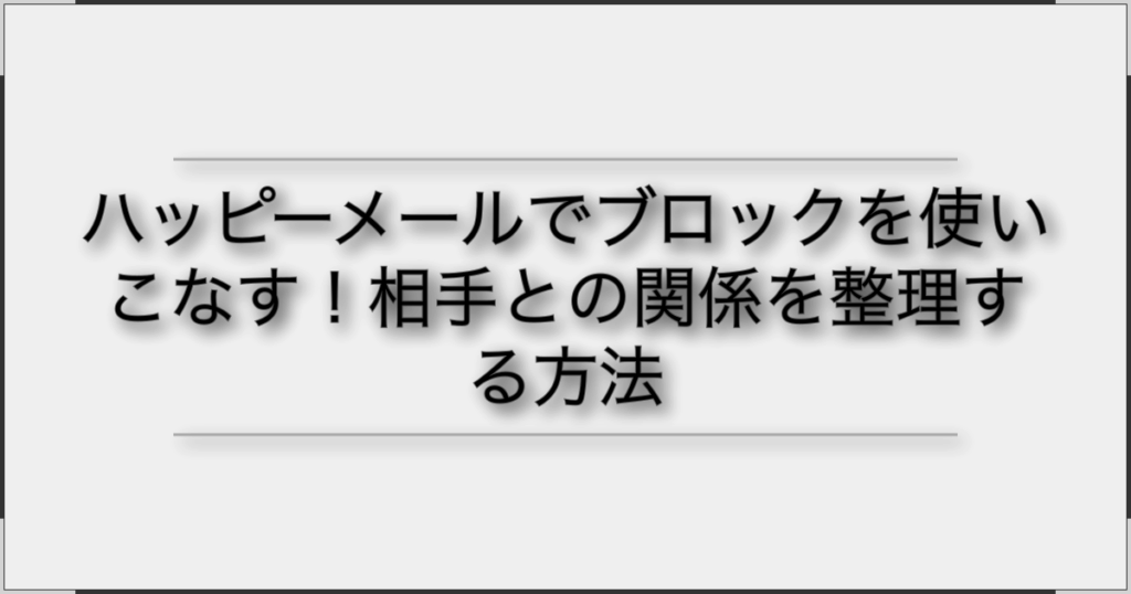 ハッピーメール ブロック 相手について専門家が詳しく解説。方法からやり方まで完全ガイド。2025年最新情報で確実に成功しましょう。