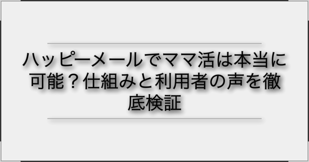 ハッピーメールでママ活は本当に可能?仕組みと利用者の声